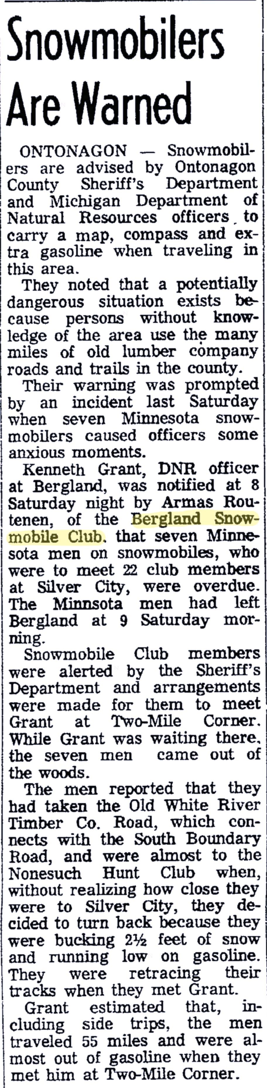Ontonagon Sno-Cruisers Snowmobile Club